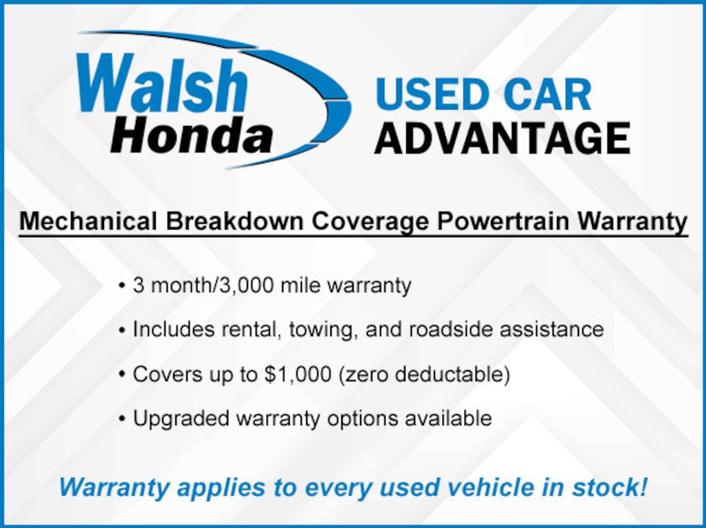 Honda Certified Used Cars Details: * Limited Warranty: 24 Month/100,000 Mile (whichever comes first) after new car warranty expires or from certified purchase date. Two Complimentary Oil Changes. * Warranty Deductible: $0 * Powertrain Limited Warranty: 84 Month/100,000 Mile (whichever comes first) from original in-service date * FREE Vehicle History * Transferable Warranty * 182 Point Inspection.